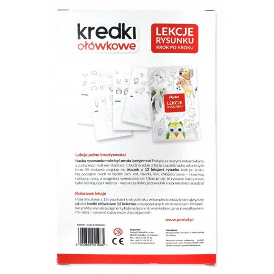 Poza bloczkiem z 12 rysunkami krok po kroku, w komplecie znalazły się najwyższej jakości kredki ołówkowe 12 kolorów CB8-12 o fantastycznych właściwościach.