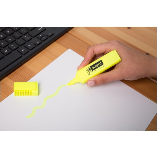 Zakreślacz posiada ściętą końcówkę o grubości linii 2-5 mm, pozostawiony bez skuwki nie wysycha przez długi czas, a jeśli wyschnie, po założeniu ponownie skuwki zregeneruje się samoczynnie.