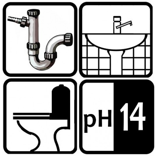 Sposób użycia i dozowania: W zależności od średnicy rury wlać od 100-500 ml preparatu do odpływu, odczekać około 15 minut, przelać odpływ wodą (w razie konieczności czynność powtórzyć)