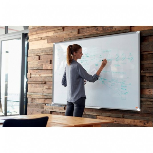 Tablica suchościeralna z elegancką i stylową ramą z aluminium. Mocowana do ściany w narożnikach. Z pojemną półką umożliwiającą wygodne przechowywanie markerów i gąbek. Ceramiczna powierzchnia suchościeralnej tablicy magnetycznej zapewnia wysoki poziom ścieralności i odporności przy częstym użytkowaniu.