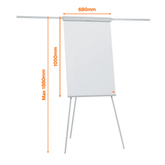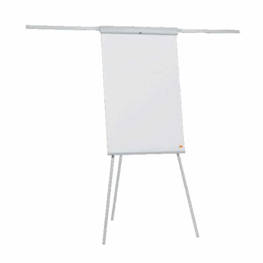 Flipchart ze stalową magnetyczną tablicą suchościeralną umieszczony na trójnożnym statywie, ze zintegrowaną półką na markery i dwoma wysuwanymi ramionami, przydatnymi, gdy trzeba pokazać dodatkowe strony. - nogi statywu mają regulowaną wysokość do 188 cm i są w pełni chowane na czas przechowywania lub przenoszenia - w komplecie haczyki do bloków Nobo oraz listwa ułatwiająca odrywanie kartek z zawieszonego bloku - stalowa magnetyczna powierzchnia tablicy zapewnia wysoki poziom ścieralności przy umiarkowanym użytkowaniu.
