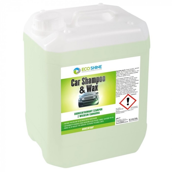 ECO SHINE CAR SHAMPOO & WAX 10L SKONCENTROWANY SZAMPON Z WOSKIEM CARNAUBA