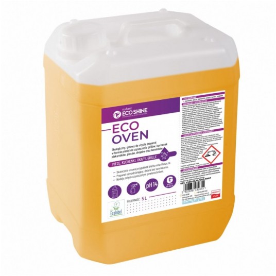 - Ekologiczny, gotowy do użycia preparat w formie pianki do czyszczenia grillów, kuchenek, piekarników, pieców, okapów oraz kominków - Skutecznie usuwa bardzo silnie przypalone białka, tłuszcze roślinne i zwierzęce, resztki jedzenia oraz sadzę - Preparat samodziałający, działa bez szorowania - Można stosować na zimną lub ciepłą powierzchnię - Wydobywa naturalny połysk z czyszczonych powierzchni, garnków, patelni i urządzeń - Zawiera składniki m.in. pochodzenia roślinnego w tym certyfikowany olej palmowy zgodny z RSPO - Bezzapachowy zgodnie z zasadami systemu HACCP - Eco Oven można stosować do: pieców, piekarników, okapów, garnków, patelni, kuchenek: gazowych, elektrycznych, ceramicznych, indukcyjnych oraz kuchenek mikrofalowych - Nie zawiera:: EDTA, NTA, SLS, fosforanów, dodecylobenzenosulfonianów - Nie stosować do pieców i piekarników z funkcją automatycznego mycia parą - Pojemność: 5l