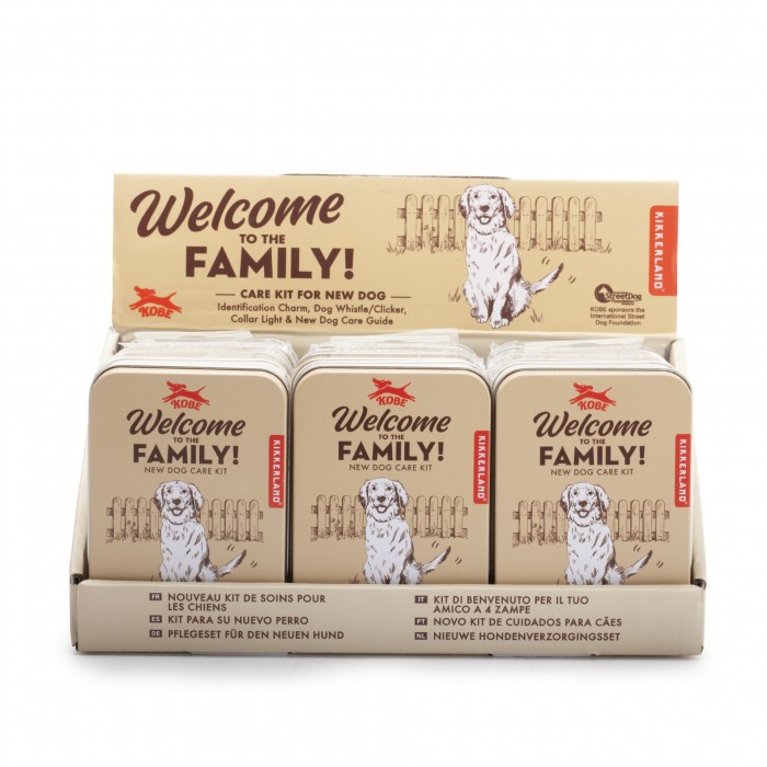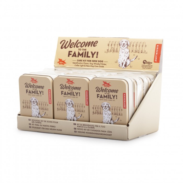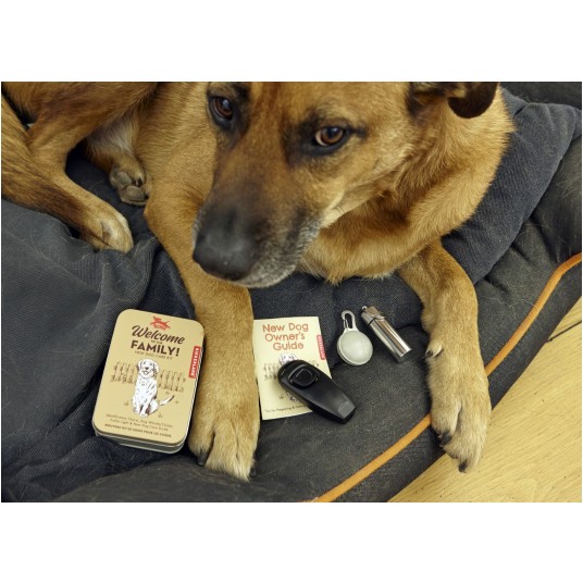 - Spakowany w puszkę zestaw dla nowego pupila. - Zestaw zawiera adresówkę, gwizdek, lampkę do obroży oraz przewodnik ze wskazówkami jak postępować z nowym psem. - Zastosowane materiały: ABS, PVC, żelazo, aluminium, papier - Wymiary: 7,3 x 10,4 x 3,2 cm