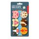 - Zestaw 6 różnych klipsów do opakowań. - W zestawie klipsy w kształcie świni, owcy, krowy, kozy, konia i kurczaka. - Zamykają opakowania i pozwalają zachować świeżość przechowywanym produktom spożywczym. - Projekt: KDT - Zastosowane materiały: plastik, metal - Wymiary: 4,5 x 4 cm