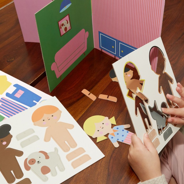 - Zestaw zawiera 6 postaci do ubrania i dom do udekorowania za pomocą ponad 100 zabawnych naklejek.