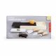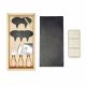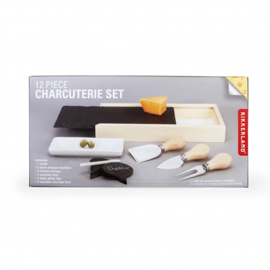- W zestawie: drewniane pudełko do przechowywania, tablicę łupkową, 3 noże do serwowania, 5 markerów do sera, 1 kreda i taca na dodatki z 3 sekcjami