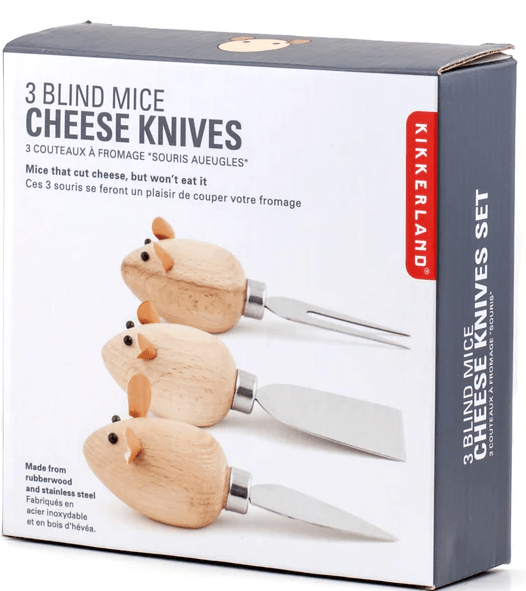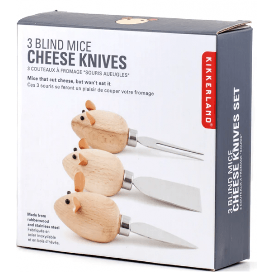 - Zestaw 3 uroczych noży do sera w kształcie myszy.