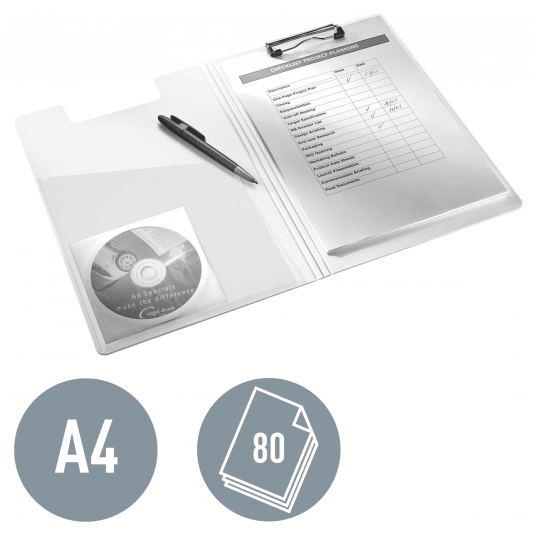 Wysokiej jakości deska z klipsem i okładką wykonana z twardego plastiku (polifoam), w żywych kolorach WOW, wykończona z połyskiem. Idealna do zabezpieczenia dokumentów w trakcie podróży lub w czasie wykładów i prezentacji.