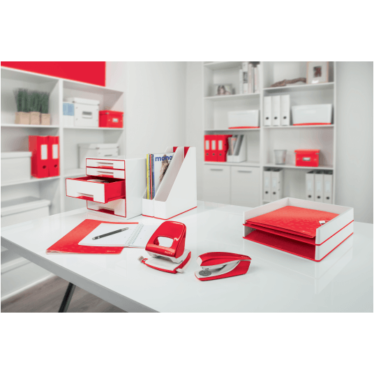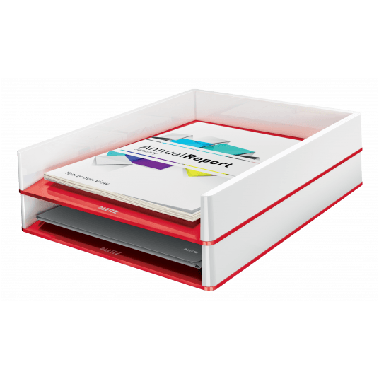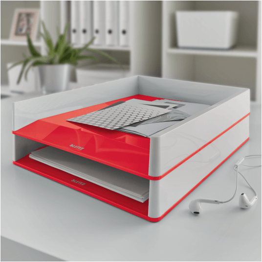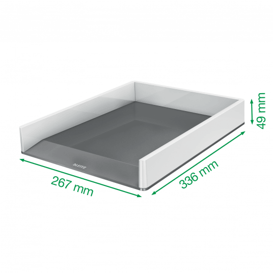 Przykuwająca wzrok, wysokiej jakości stylowa półka na dokumenty Leitz, w unikalnym zestawieniu 2 kolorów, wykończona z połyskiem. Idealnie pasuje do pozostałych produktów z kolekcji Leitz WOW.