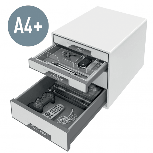 Najwyższej jakości, przykuwający wzrok pojemnik z szufladami WOW CUBE z niezwykłym i stylowym połączniem dwóch kolorów o błyszczącym wykończeniu. Wytrzymały pojemnik z szufladami WOW CUBE doskonale pasuje do pozostałych produktów z kolekcji WOW