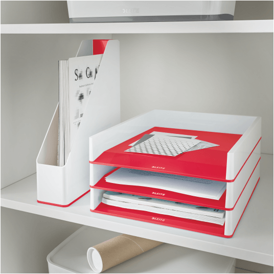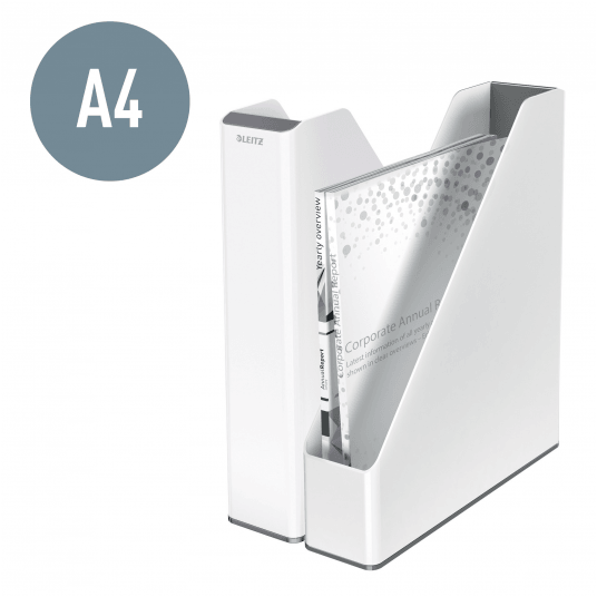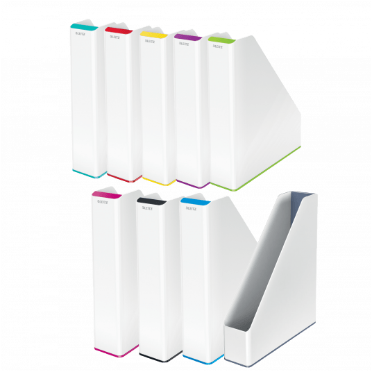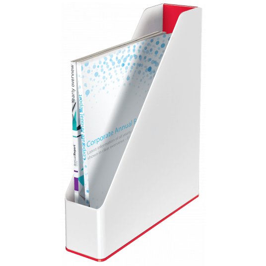 Przykuwający wzrok, wysokiej jakości stylowy pojemnik na dokumenty, w unikalnym zestawieniu 2 kolorów, wykończony z połyskiem.