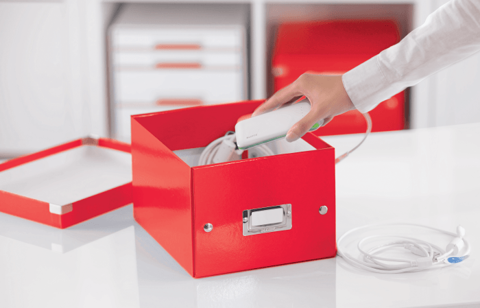 Małe, uniwersalne pudełko do przechowywania lub przenoszenia przedmiotów w formatach do A5.