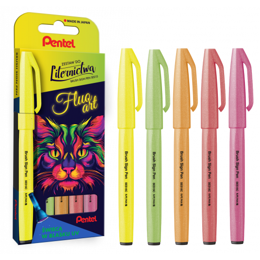 Pisaki pędzelkowe Pentel SES15C Brush FLUO ART 5sz