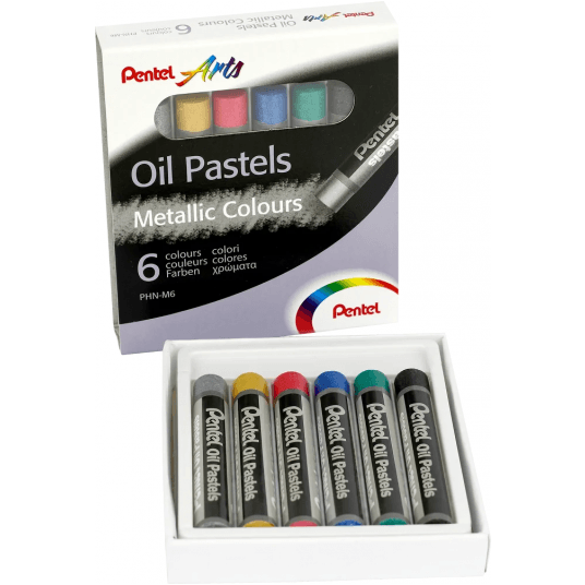 Delikatne pastele olejne w 6 metalicznych kolorach. Miękka, aksamitna konsystencja łatwo się aplikuje i rozprowadza palcem. Odporne na światło, wodoodporne pastele olejne, rozpuszczalne terpentyną. Idealne do technik mieszanych, cieniowania, koloryzacji. Można je stosować na różnych papierach i materiałach.