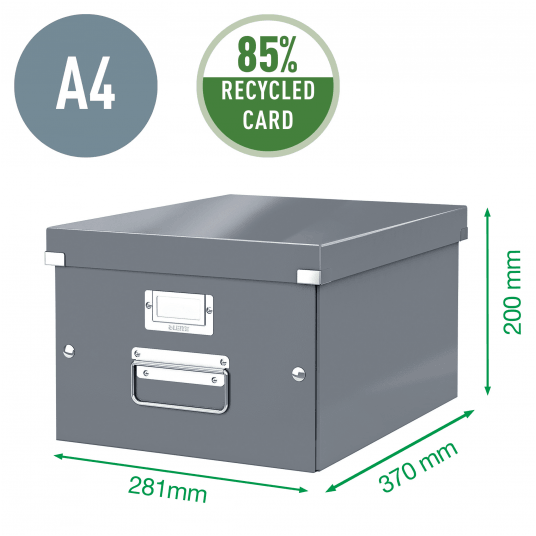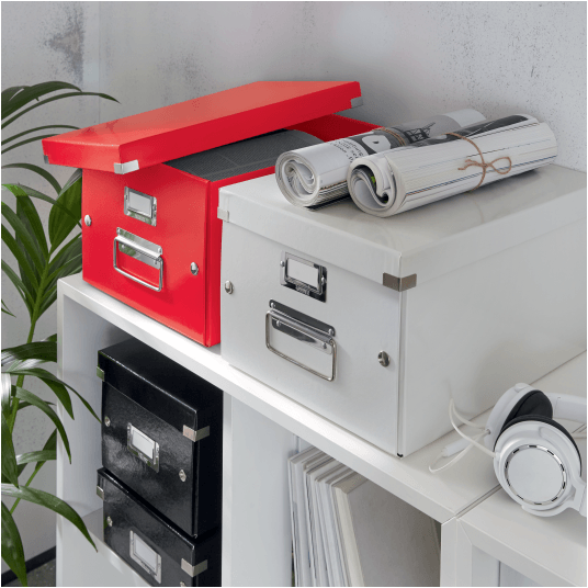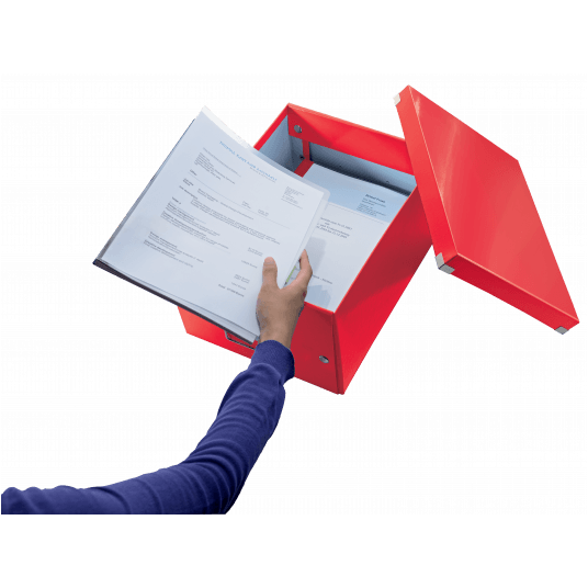 Średniej wielkości uniwersalne pudełko do przechowywania lub przenoszenia przedmiotów w formatach do A4.
