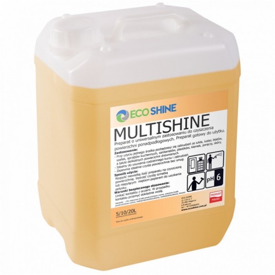 - Preparat o uniwersalnym zastosowaniu do czyszczenia wszystkich powierzchni ponadpodłogowych - Gotowy do użycia - Przy użyciu jednego środka pozbędziesz się zabrudzeń ze szkła, luster, blatów, szafek, sprzętów kuchennych, sanitariatów, plastików, klamek, poręczy, skóry, a także delikatnych powierzchni drewnianych - Idealny do usuwania codziennego kurzu i zabrudzeń - Wystarczy spryskać czyszczoną powierzchnię preparatem MULTISHINE i przetrzeć szmatką - Zapewnia idealnie czyste powierzchnie bez smug - Pozostawia świeży, przyjemy zapach - Rodzaj czyszczenia: ręczne - Zastosowanie: szkło, metal, plastik, kamień, skóra, drewno - Odradzane zastosowanie: brak - Gęstość: ok. 1,0 g/ml - pH preparatu ok. 6 - Pojemność: 10l