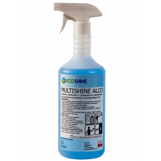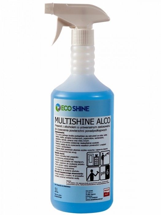 ECO SHINE MULTISHINE ALCO 1L GOTOWY DO UŻYCIA PŁYN Z ALKOHOLEM DO BIEŻĄCEGO CZYSZCZENIA WYPOSAŻENIA RTV/AGD, MEBLI