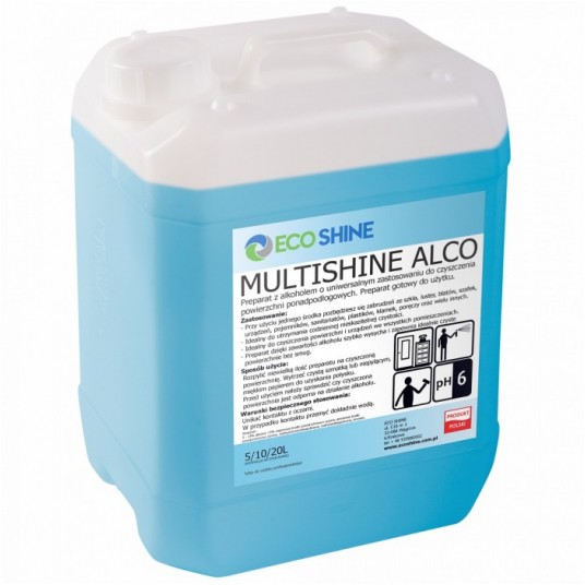 - Preparat z alkoholem o uniwersalnym zastosowaniu do czyszczenia wszystkich powierzchni ponadpodłogowych i przedmiotów odpornych na działanie alkoholi - Gotowy do użycia - Przy użyciu jednego środka pozbędziesz się zabrudzeń z szkła, luster, blatów, szafek, sprzętów kuchennych, pojemników, sanitariatów, plastików, klamek, poręczy oraz wielu innych - Idealny do utrzymania codziennej nieskazitelnej czystości - Świetnie nadaje się do czyszczenia wszelkich powierzchni i urządzeń w kuchni i sanitariatach - Preparat dzięki zawartości alkoholu szybko wysycha i zapewnia idealnie czyste powierzchnie bez smug - Pozostawia świeży, przyjemny zapach - Rodzaj czyszczenia: ręczne, pianowe - Zastosowanie: szkło, metal, plastik, kamień, skóra, drewno - Odradzane zastosowanie: powierzchnie wrażliwe na działanie alkoholu - Gęstość: ok. 0,9 – 1,0 g/ml - pH preparatu 6 - Pojemność: 5l