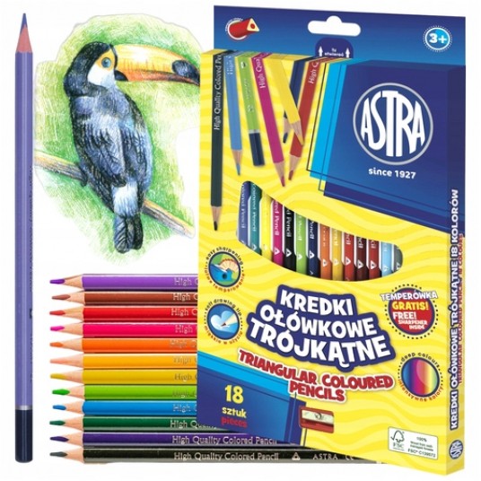 Kredki 18kolorów ASTRA trójkątne