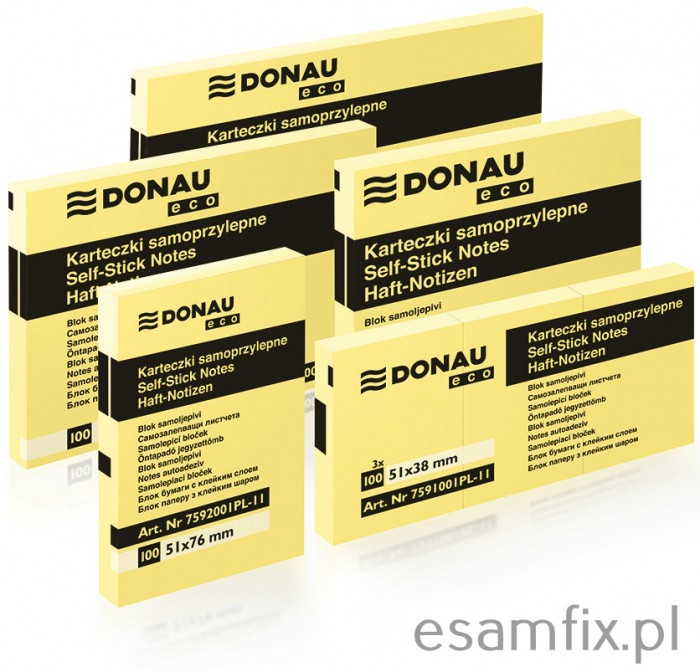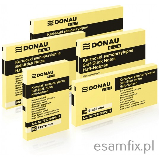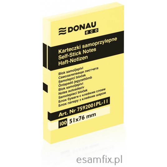 Bloczek samoprzylepny DONAU Eco 51 x 76 mm 1x100 karteczek jasnożółty