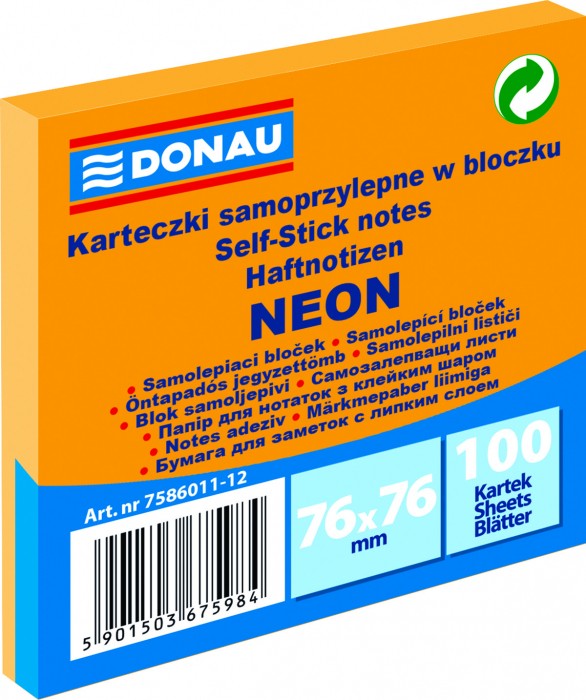 - uniwersalne kolorowe karteczki, idealne do przekazywania wiadomości - gramatura: 70 g/m2 (+/- 4%) - klej umieszczony wzdłuż dłuższego boku - klej usuwalny za pomocą wody - posiadają oznaczenie Zielony Punkt (Der Grüne Punkt) - oznaczające udział w systemie recyklingu i odzysku odpadów wynikający z przepisów prawa polskiego i UE - zabezpieczone folią z charakterystycznym czerwonym paskiem ułatwiającym otwieranie