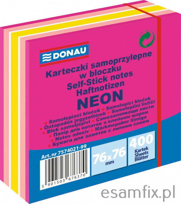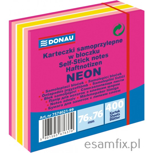 Kostka samoprzylepna DONAU, 76x76mm, 1x400 kart., neon-pastel, mix różowy