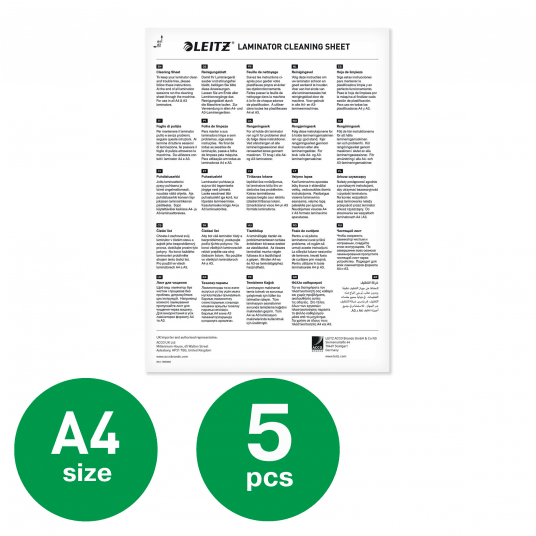 Arkusze czyszczące Leitz laminatory A3/A4 op.5szt.