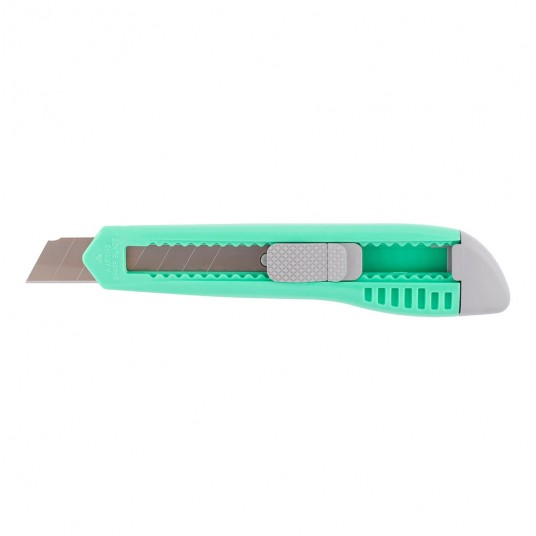 Nóż posiada bardzo praktyczny wbudowany plastikowy element, który ułatwia odłamywanie stępionych końcówek.