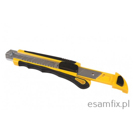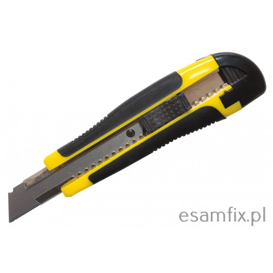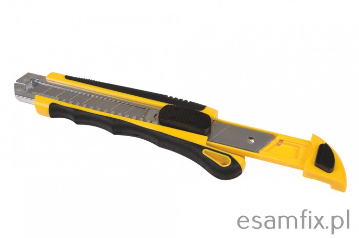 - wysuwane 7-częściowe ostrze z możliwością odłamywania części - obudowa wykonana z wytrzymałego plastiku - wyposażony w gumową rękojeść zapewniającą doskonałe trzymanie - stalowa prowadnica ostrza gwarantuje stabilność i bezpieczeństwo pracy - ostrze wykonane ze stali hartowanej - posiada magazynek mieszczący dwa dodatkowe ostrza - w komplecie znajdują się trzy ostrza - dług. ostrza: 100 mm, szer. ostrza: 18 mm - kolor: żółto-czarny