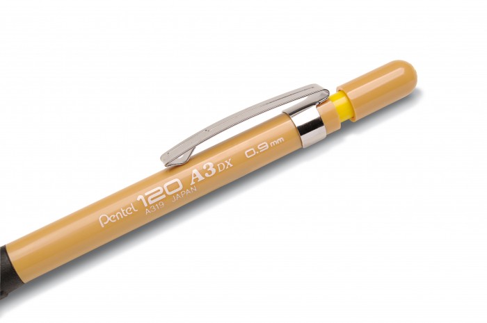 Znakomity jakościowy ołówek 0,9 mm do pisania i kreślenia. Długa końcówka 4,0 mm pozwala na precyzyjną pracę. Posiada metalowy mechanizm zaciskowy, zdejmowany klips oraz gumkę wymienną Z2-1.
