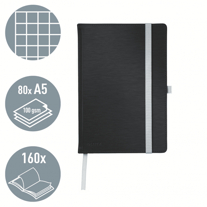 Notatnik LEITZ Style, A5, w kratkę, z twardą okładką czarny