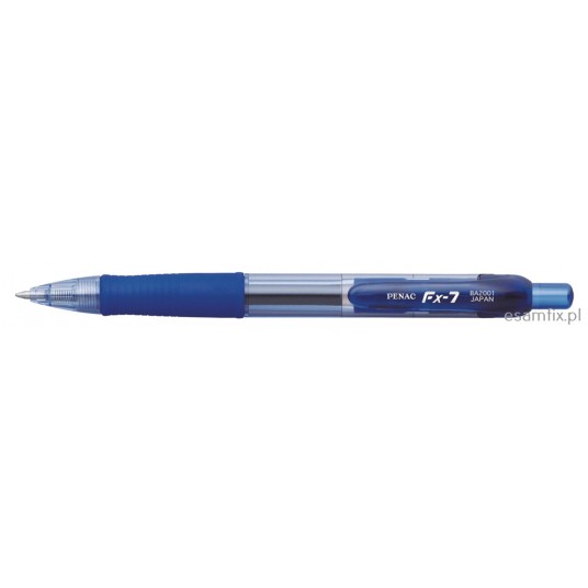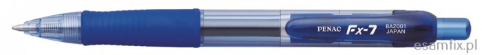 •Długopis żelowy PENAC FX7 automatyczny z wymiennym wkładem, zawieraszybkoschnący atrament żelowy na bazie wody. •Gumowana rękojeść z antypoślizgowymi żłobieniami. •Rękojeść oraz profilowany klips w kolorze tuszu. •Klips zabezpiecza i chroni ubranie przed przypadkowym poplamieniem. •Średnica kulki: 0,7 mm. •Grubość linii pisania: 0,35 mm. •Długość linii pisania: do 670 m. •Certyfikat ISO9001 i EN71 . •Kolor: niebieski.