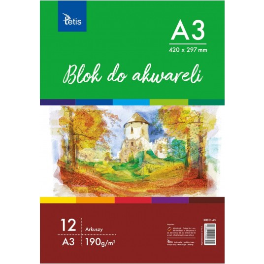 Blok do akwareli TETIS A3 42 x 29,7 cm 190g 12 arkuszy KB011