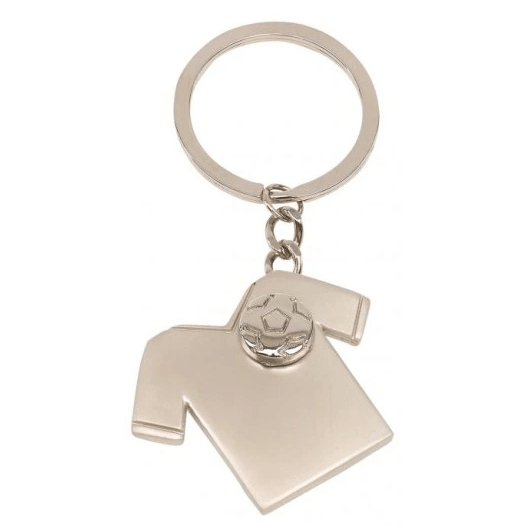 Brelok HATTRICK z pierścieniem do zawieszenia klucza, wykonany z chromowanego metalu.