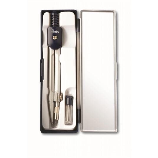 Cyrkiel metalowy w etui plastikowym TETIS + 2 grafity GC002-K