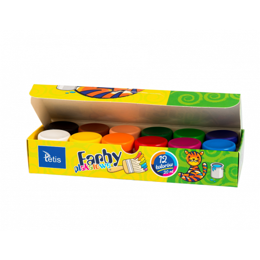 - Farby plakatowe odporne na światło, w intensywnych barwach, zmywalne.