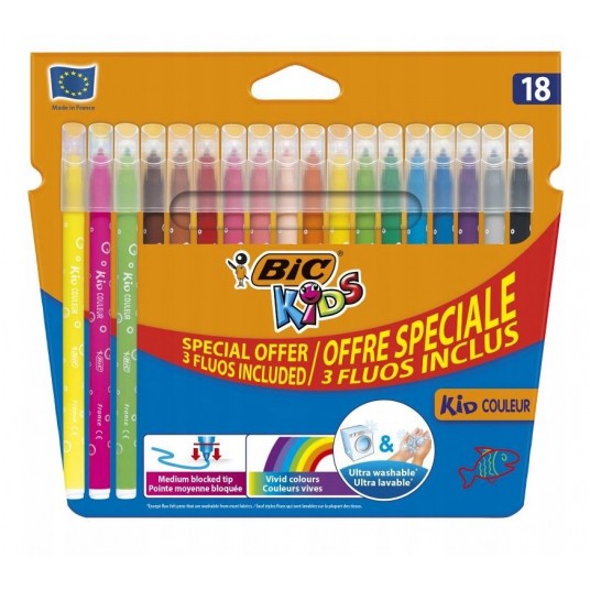 BIC Kids Kid Couleur Flamastry 18 - w tym 3 fluo kolory