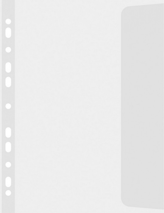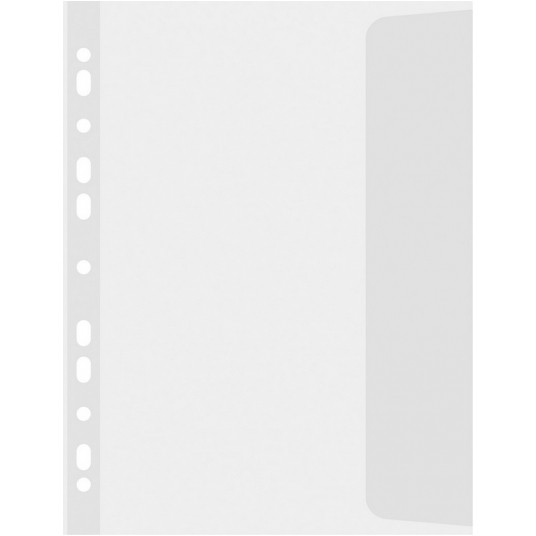 - miękkie, wykonane z gładkiej, matowej, ekologicznej folii o grubości 100 mic. - przeznaczone na dokumenty w formacie B4 - przystosowane do dokumentów w obwolutach - boczna klapa ułatwia wkładanie i wyjmowanie dokumentów, dodatkowo zabezpiecza przechowywane dokumenty - przezroczyste - specjalnie wzmocniony brzeg - pasek z multiperforacją - wymiary wewnętrzne: 228 x 330 mm - wymiary zewnętrzne: 240 x 340 mm