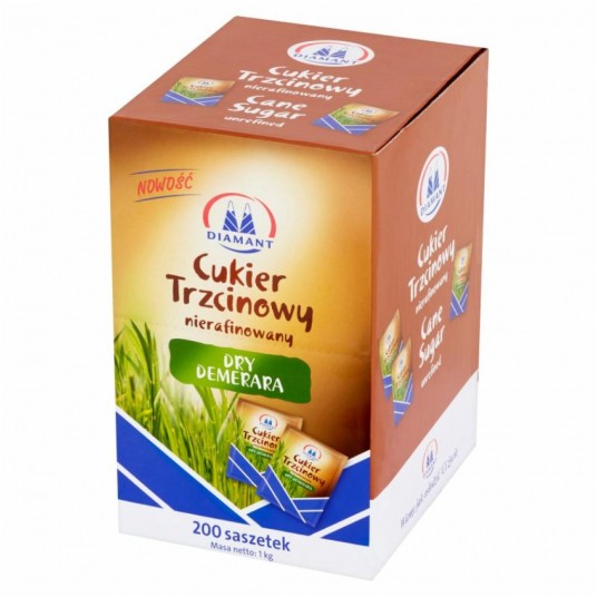 Cukier trzcinowy 200 saszetek DIAMANT brązowy