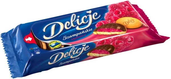 syrop glukozowo-fruktozowy, cukier, czekolada 15,3% [cukier, miga kakaowa, tłuszcz kakaowy, emulgatory (lecytyna sojowa, E476), aromat], mąka pszenna, jaja, skrobia ziemniaczana, substancja utrzymująca wilgoć (glicerol), olej rzepakowy, regulatory kwasowości (kwas cytrynowy, kwas jabłkowy, cytryniany sodu), zagęszczony sok pomarańczowy i rozdrobniona pomarańcza (0,55%), substancja żelująca (pektyny), zagęszczony sok wieloowocowy, aromaty, sól, maltodekstryna, substancja spulchniająca (węglany amonu), barwnik (karoteny), przeciwutleniacz (kwas askorbinowy), stabilizator (guma guar), emulgator E471. Może zawierać mleko i orzechy.
