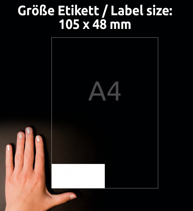 Trwałe etykiety papierowe 105 x 48 mm, białe etykiety samoprzylepne, etykiety do druku 100 ark. / op., Avery 3424