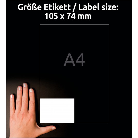 Trwałe etykiety papierowe 105 x 74 mm, białe etykiety samoprzylepne, etykiety do druku 100 ark. / op., Avery 3427