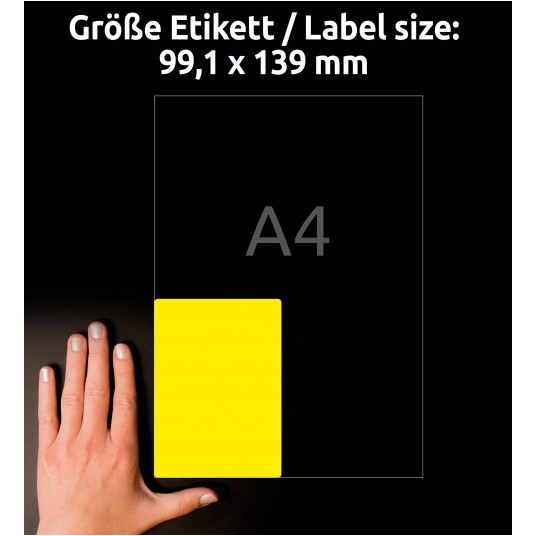 Etykiety foliowe 99,1 x 139 mm, żółte etykiety wodoodporne z trwałym klejem, etykiety poliestrowe 20 ark. / op., etykiety ostrzegawcze Avery L6127-20