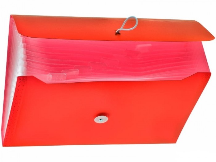 - Teczka harmonijkowa PP z gumką, mieszcząca format A4.