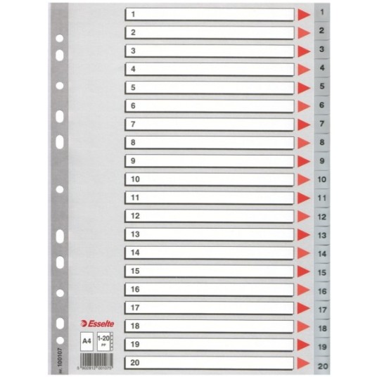 - przekładki i indeksy w kolorze jasnoszarym - multiperforowane - pasują do każdego segregatora - z kartą informacyjno - opisową, której pasek z perforacją jest wzmocniony folią - wymiary: A4 - 225 x 297 mm