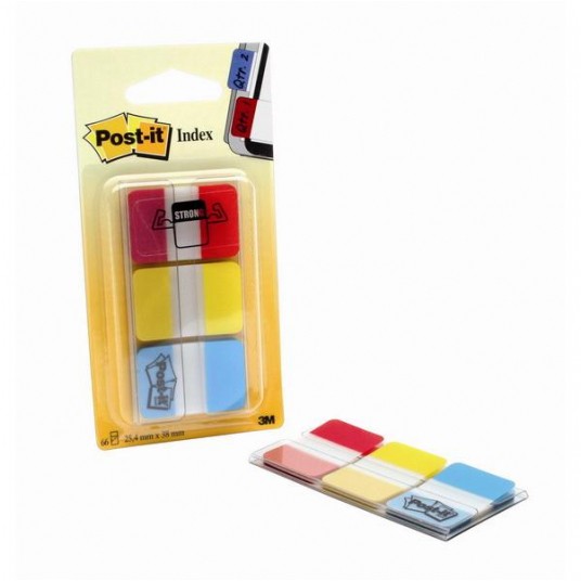 Samoprzylepne zakładki indeksujące Post-It silne żółte, czerwony, niebieski 25 x 38 mm