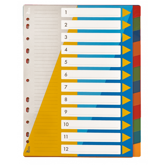 - Przekładki PP numeryczne w formacie A4, numeracja 1-12.