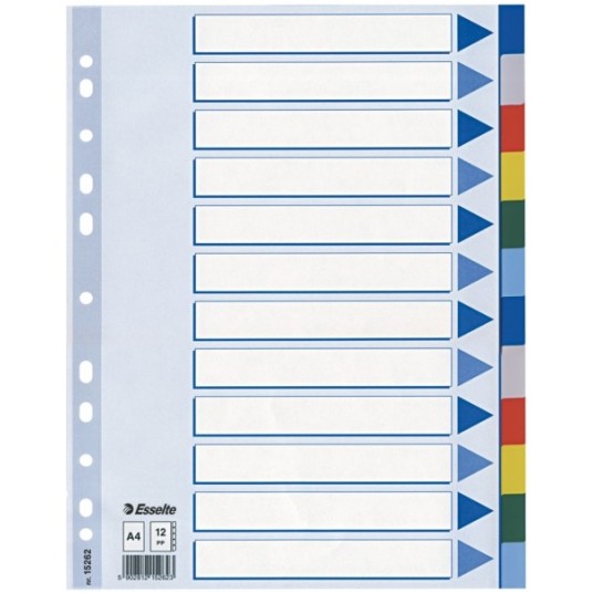 PRZEKŁADKI ESSELTE Z PP, A4 1-12 KOLOR WIELOBARWNY